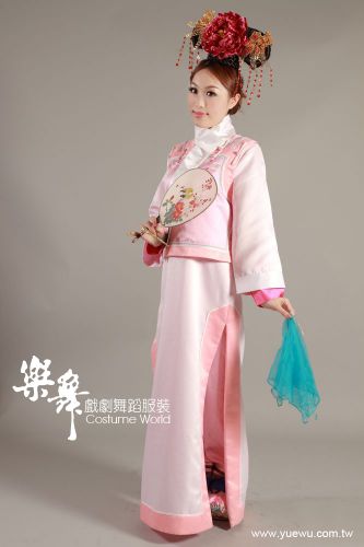 淺粉圓領+粉桔邊背心旗服 CK-101007